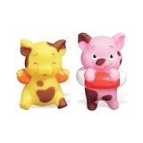 Very cute bath toys. My sons (3 1/2 yrs & 11 months) got this for Christmas in their stockings. Very cute how the mud "goes away" in the warm water and comes back when it is out of the water. I just didn't know that they could "squirt". I was trying to purchase all bath toys that don't squirt b/c I was sick of the gross mold that grows in the toys. But I used a hot glue gun to seal up the hole before it went in the water and so far it has worked. All in all a very cute toy. Definitely recommend!Get more detail about Munchkin Muddy Pigs Bath Toy.